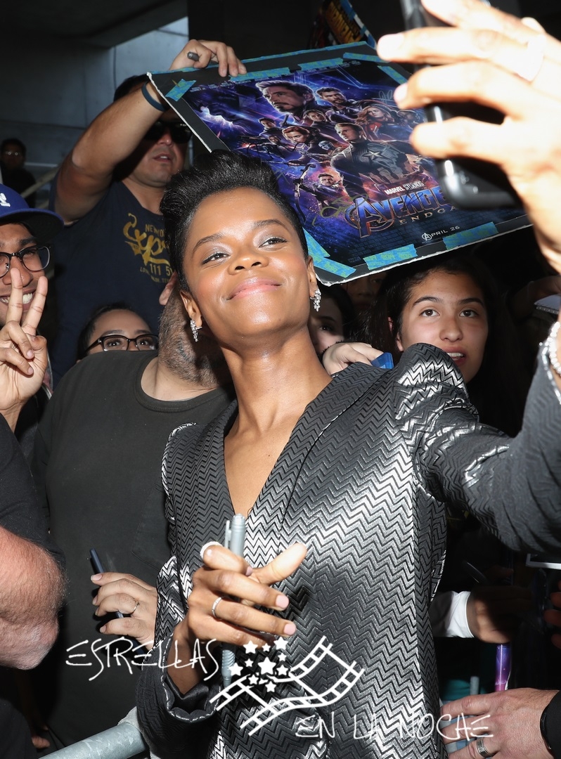 LOS ANGELES, CA - APRIL 22: Letitia Wright takes a selfie with a fan during the Los Angeles World Premiere of Marvel Studios' "Avengers: Endgame" at the Los Angeles Convention Center on April 23, 2019 in Los Angeles, California. (Photo by Rich Polk/Getty Images for Disney)