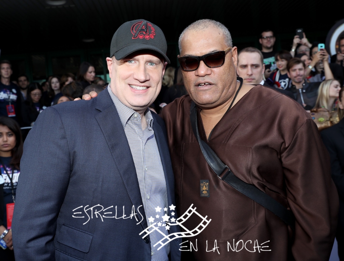 LOS ANGELES, CA - APRIL 22: (L-R) President of Marvel Studios/Producer Kevin Feige and Laurence Fishburne attend the Los Angeles World Premiere of Marvel Studios' "Avengers: Endgame" at the Los Angeles Convention Center on April 23, 2019 in Los Angeles, California. (Photo by Rich Polk/Getty Images for Disney)