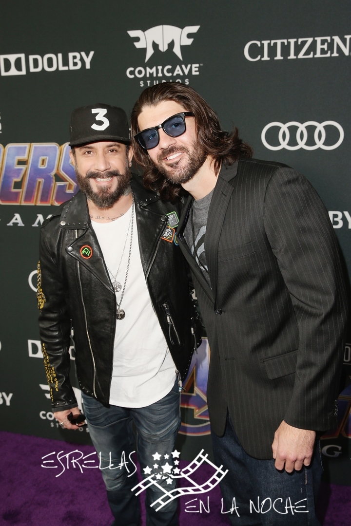 LOS ANGELES, CA - APRIL 22: AJ McLean (L) and guest attend the Los Angeles World Premiere of Marvel Studios' "Avengers: Endgame" at the Los Angeles Convention Center on April 23, 2019 in Los Angeles, California. (Photo by Jesse Grant/Getty Images for Disney)